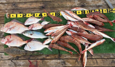 今日はマダイにホウボウが大漁ですね。 マダイはなかなかのサイズが揃っていい感じ。 ホウボウは数釣りで楽しめます。