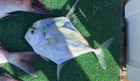 今日もいろいろ釣れました。マダイ、太刀魚、ヒラメ、アオリイカなどなど。初めて見ました!イトヒキアジ、生息域が広がってきてるのかもですね。