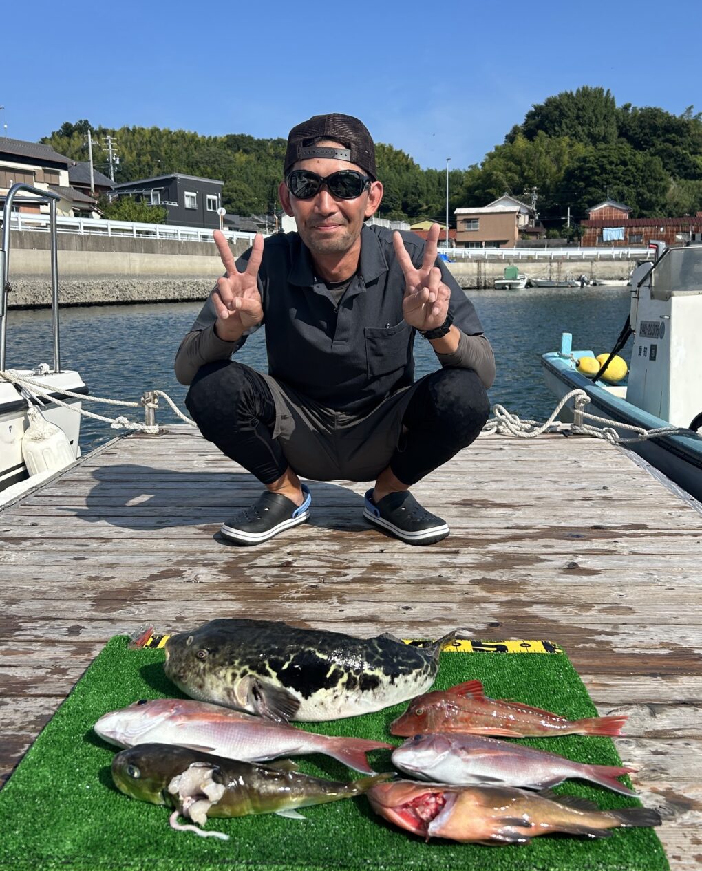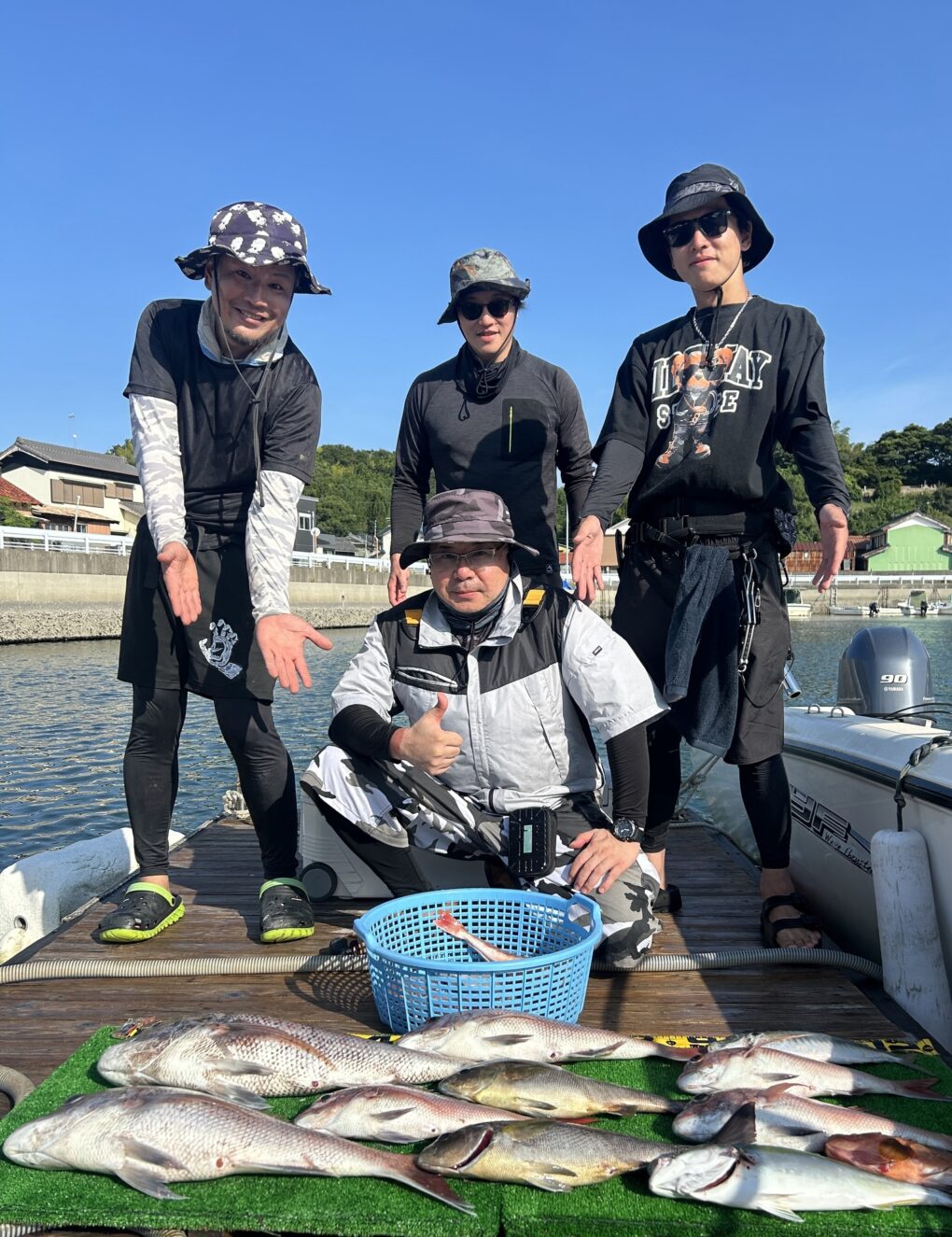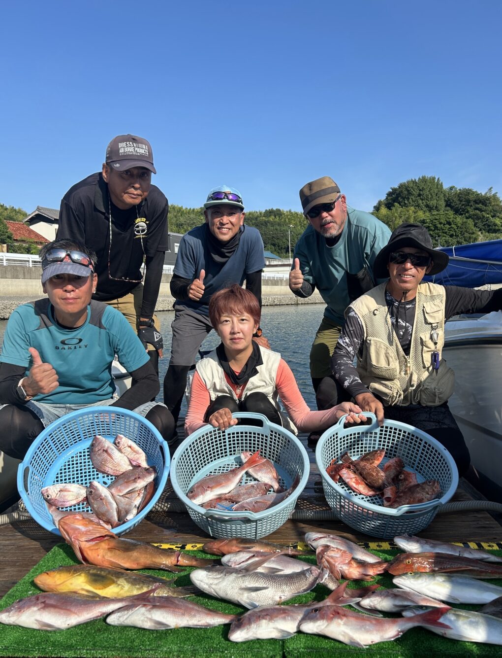 今日は釣れすぎ〜🙌マダイは70をアタマにボコボコに釣れました。ハタにホウボウ、デカトラフグ,アジなどいっぱいです。