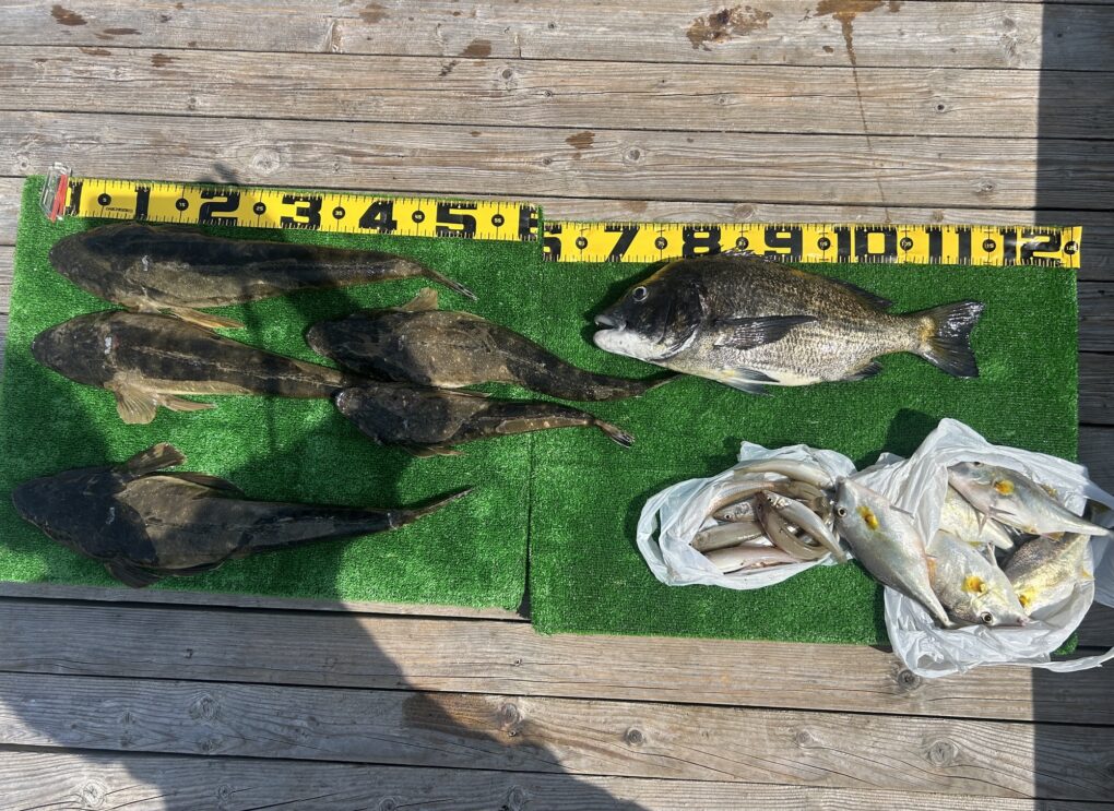 梶島周りでコチ,クロダイも潜んでいるんですね。キス,ツノギマはよく釣れています。