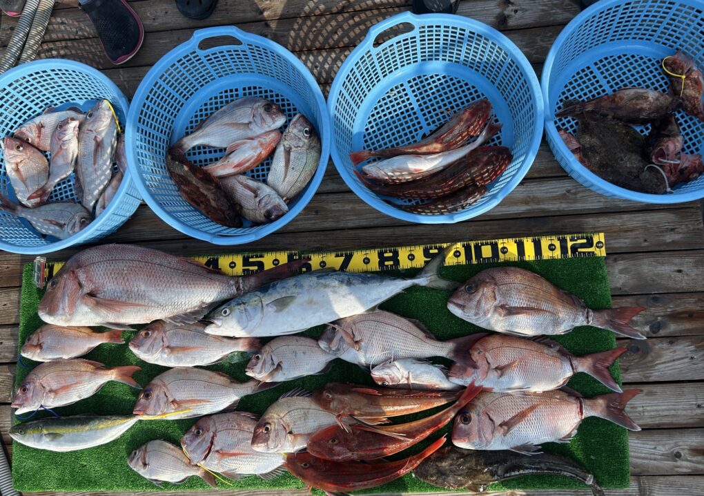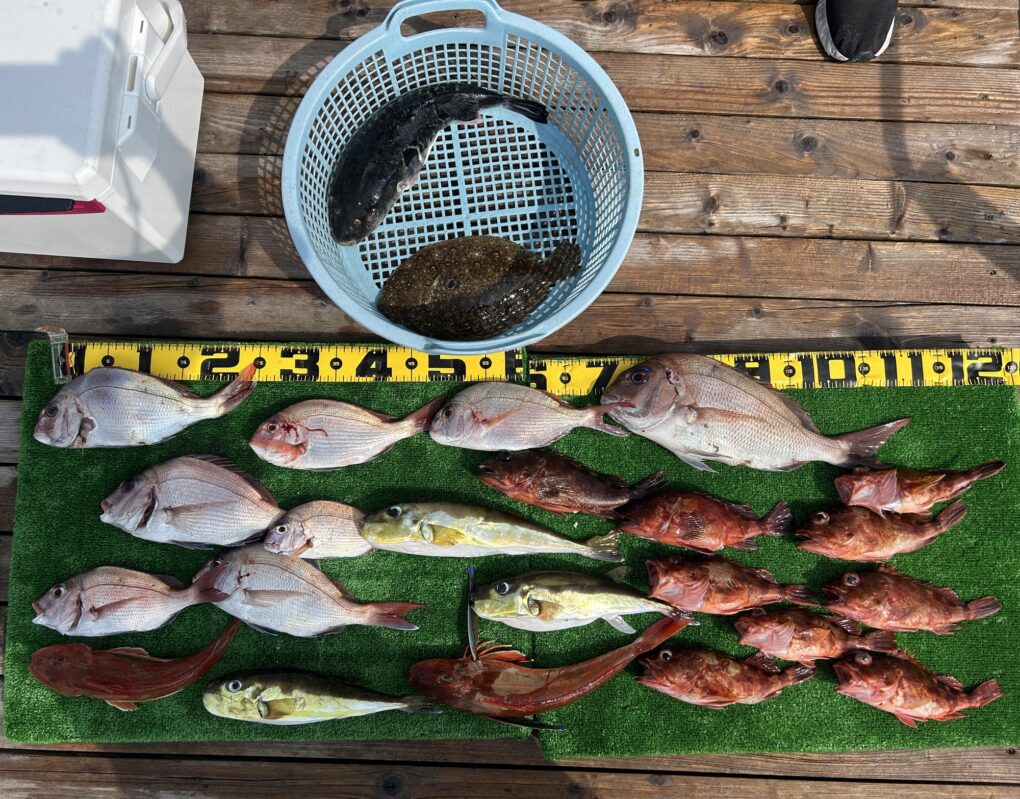65センチをアタマにマダイはボコボコ、ホウボウ,カサゴもデカいですね。